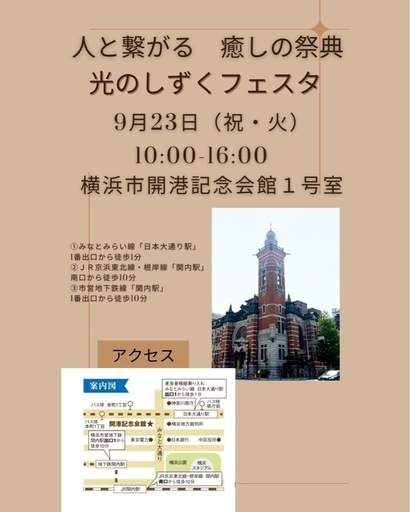 癒しの祭典『光のしずくフェスタ』にて、過去に囚われたネガティブな感情解放『エモーションコード』を出展します。筋反射にて感情を特定し、20分の間で取れるだけ解放します¥2,000お得なこの機会にお試しください✨ 11:00-11:20 満席 11:30-11:50 満席 13:00-13:20 13:30:13:50 15:00-15:20 15:30-15:50残り4名様ご予約はジモティーのメッセージか https://relieve-aoyama.crayonsite.net/p/10/にて承ります。他にも占い・鑑定やヒーリング、スピリチュアルリーディング、ワークショップなど盛りだくさんのブースが出展します。*⭐︎*⭐︎*⭐︎*⭐︎*⭐︎*9/23(祝・火)10時〜16時横浜市開港記念会館1号室入場無料
