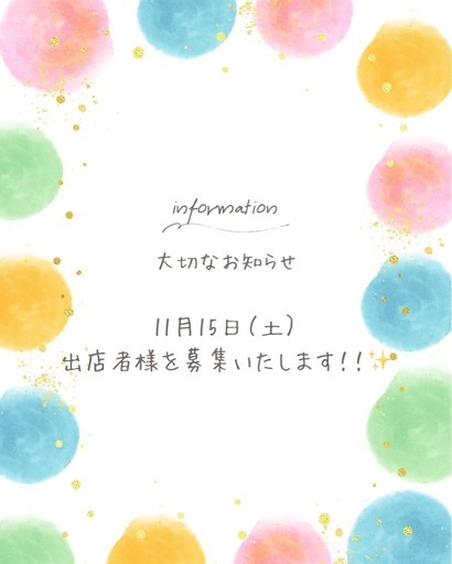 「パレットマルシェ〜みんなの色で描く街〜」11月20日の、かわさき子どもの権利の日をご存知ですか?パレットマルシェでは、11月15日(土)に、かわさき市こども未来局より承認を受けました、イベントを開催致します!11時〜16時(予定)テーブル1台、椅子付き・一般出店(出店料2000円)※30分程度、こども店長の受け入れをお願い致します!・親子出店(出店料2000円)親子で仲良く出店しましょう!・こどもマルシェ(出店料売り上げの10%)フリマでも、手作り品でも何でもOK✨・こどもボランティア(お土産有り)こちらが用意したお店や受付のお手伝いこちらを募集していますので、ぜひお気軽にメッセージ頂けたらと思います😊 http://instagram.com/palette_.marche