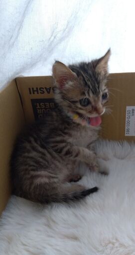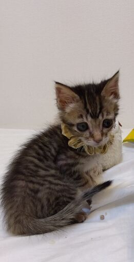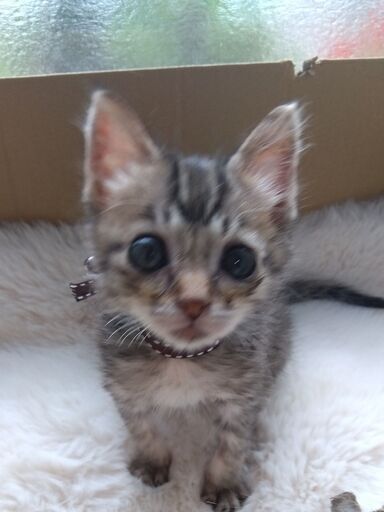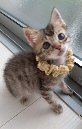 ◆性格や特徴~11/14 15時 募集中です。優しい方に繋がることを願っています~ご覧いただきありがとうございます。ノラちゃんの多い地域で保護されました。当方では里親さんに繋げるためにお世話をしています。キジトラ女の子です。可愛い甘え方をしてくれます。お目目の大きな可愛い子です。幼齢のため基本的に在宅されている方にお願いします。お渡しの時期はご相談で決めていきたいと思います。落ち着くまでは写真付きで様子を教えてください。◆健康状態保護当初ミルクが飲めず点滴に通いました。食欲もあるのですが、まだお皿から上手に食べられず補助することもあります。風邪で何度か通院しました。現在も服薬中です。日に数回くしゃみをしているので暖かくしています。場所が変わるとまだ粗相してしまうこともあります。そういうことも怒らない方にお願いしたいと思っています。体調が悪い時はすぐに獣医さんへ連れて行っていただける様にお願いします。フロントラインスプレー1回、シャンプー2回済ましています。◆その他・誓約書を交わしてもらいます。・子猫には生後2か月で、ワクチン接種と駆虫をお願いします。・適切な時期に避妊及び去勢をお願いします。・ウイルス検査をされる場合、白血病の検査はひと月後にエイズ検査はふた月後にお願いします。もし検査をして陽性であっても手放さない方に限らせていただきます。・未成年の方、後継者のいない高齢者さん、アレルギーをお持ちの方、ペット不可物件にお住いの方はご遠慮下さい。移送費一部:5,000円医療費一部(点滴×4回):7,500円-医療費は総額の半分程度になります。(明細をお渡しします)自身の時間を使って保護しています。ご理解、ご協力いただける方のみご連絡ください。(気持ちの良いやり取りがしたいだけです。上記を見て嫌だと思った方はご遠慮くださいますようお願いします)