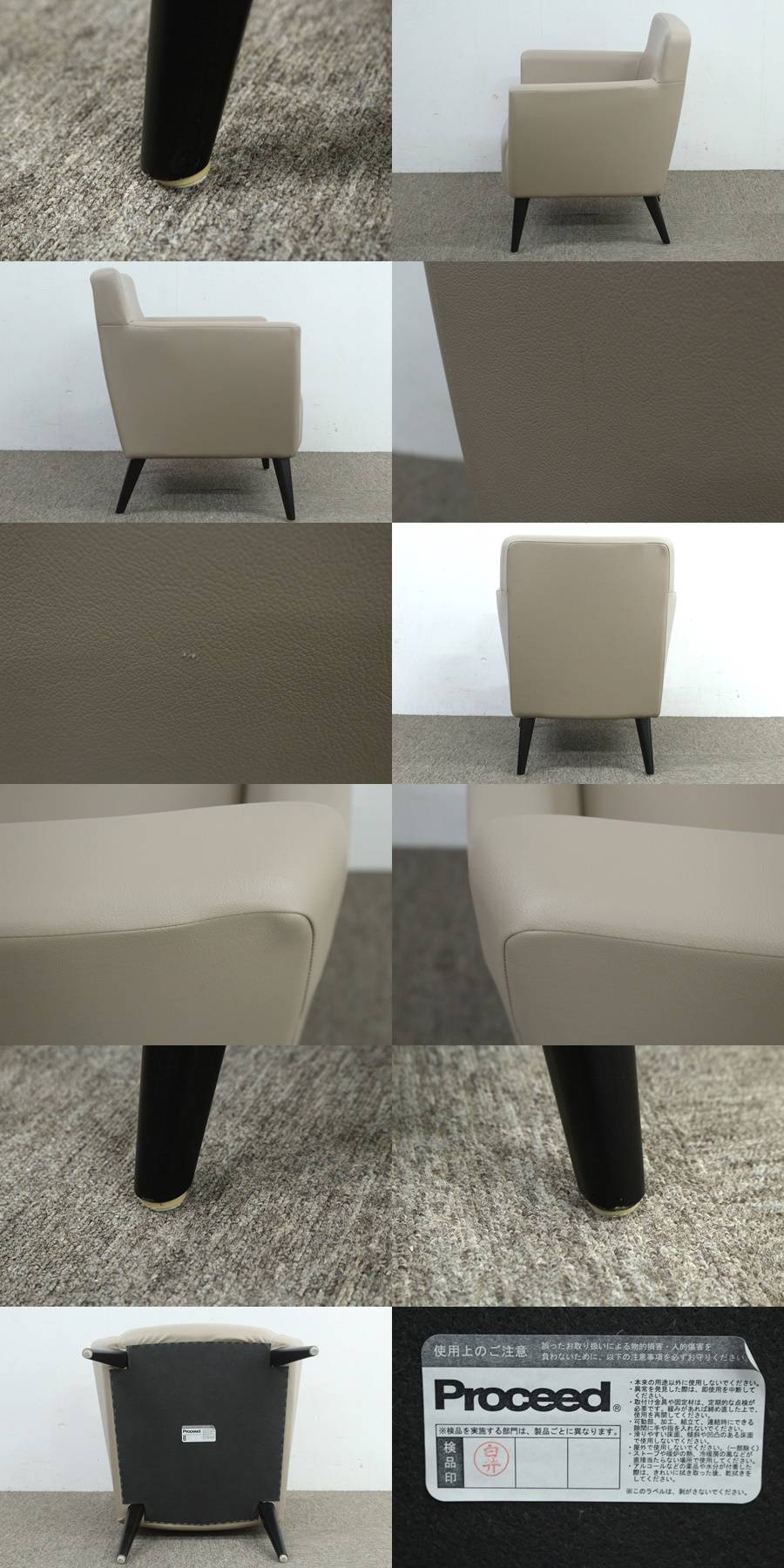【※必ずお読みください※】 数ある投稿の中からご覧いただきありがとうございます! こちらの商品は神奈川県藤沢市にあります弊社倉庫にて直接引き渡し限定での対応となります。 ■お取り置きは取引成立から7日間とさせていただきます。 期限を経過し連絡も取れない場合、キャンセルとさせていただきます。 ■現状優先とさせていただいてますのでお引渡し後の不具合等対応できません。 ■クレジットカード、電子マネー対応不可となります。 ■対応可能時間 平日、隔週土曜、祝日、11時~17時となります。 (前日までにお取引の約束が成立しており、引取のみの場合は9時~) 都合によりご希望の日時に添えない場合もございます。 ■お問合せ時、お引き取り希望日時を記載の上、ご連絡お待ちしております。 ■お取引日程が決まり、お越しになる際はジモティーで〜を購入した〜ですとお伝え頂きますとスムーズです。 ■行き違いで受付終了の場合、ご了承ください。 ※新型コロナウィルスの飛沫感染予防の為接客時はマスクの着用を義務化しております。 お引取り応対するスタッフはマスクを着用して対応致しますので、予めご了承ください。 ------------------------------------------------------------ 【状態】 中古品のため多少の汚れやキズ、背もたれに若干の潰れなどが見られるようでしたが、全体的には概ね綺麗な品かと思います。 詳しい状態や内容につきましては画像をご参照頂くようお願いいたします。【商品説明】欄下のURLにも追加画像がございますので、ご参照ください。 【サイズ】 全体サイズ:幅67cm×奥行65cm×高さ72.5cm 座面高さ:40cm (実寸約) 【商品説明】 Proceedのシングルソファの2脚セットです。 座面は柔らかく、また後傾姿勢になるように作られていますので、テレビを見るなどリラックス時の使用に向いているのではないかと感じました。 【以下に、追加画像がある場合がございます!↓】 https://12.photoup-pro.com/up/2403833518/20241105-4kgsi8uvfpn/hsk3v7m2ecbx0.jpg