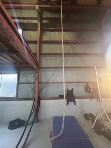 倉庫を改装してジム(仮ジム)を作ってみました。綱登り、バトルロープ、ジムハンマー等の特殊なトレーニングができます。日曜日はボクササイズもやっており、ミット打ちとマススパーリング(寸止め)等もやっています🥊私は、NSCA-CPTというトレーナー資格取得しています。スポーツ歴は、卓球、ボクシング、総合格闘技です。現在はストリートワークアウトという自重トレーニングとパフォーマンスをやっています。パーソナルトレーニングもやっているのでご興味ある方一度施設体験はどうでしょうか?
