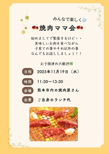 焼肉ランチママ会を開催します🩷たくさんの方とお話したいです!ご連絡お待ちしてます😊