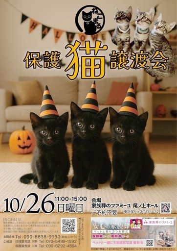 【日時】 10/26(日)11:00〜15:00【会場】 家族葬のファミーユ尾ノ上ホール 熊本市東区尾ノ上3丁目1-12 🅿️あり🐱保護猫達(生後2ヶ月〜成猫が大集合します❣️🙇♂️たくさんのご来場お待ちしてます🙇♂️★来場予約不要★見学のみOK🙆★猫飼育初心者🔰でも、トライアルから 譲渡後もサポートします【譲渡会問合せ】 TEL 090-8838-9930 いとう【地域猫&保護猫相談】 TEL 090-6292-4594 くどう TEL 070-5499-1592 かわのInstagram「nekomaru_tnra」での譲渡会のお知らせもご覧ください😺⬇️ https://www.instagram.com/reel/DPxjnQVkkj3/?igsh=eHVsa2s1czBmMTBv#譲渡会のお知らせ #譲渡会 #ねこまる #ファミーユ #保護猫 #子猫 #成猫だって幸せになれる #里親募集 #にゃお子んち #保護猫譲渡サロンみゃーん