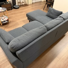 3人掛けソファ 幅約210 奥行約150(足伸ばせる部分) 3〜4年使用。使用感、へたりあります。 破れや破損はありません。 細かい傷や気づかない程度の破れはあるかもしれません。 背もたれ部分は、そのまま引き抜いて外せます。 座面のクッションも全て外せます。カバーも外して洗濯可能です。 ソファ裏の足 中央の1本だけ購入時から若干短いです。 使用には問題ありませんでした。 配送不可 引き取り限定 早めに引き取れる方を優先します。 最短引き取り可能日は10/25 10/26 よろしくお願いします。