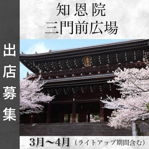 【知恩院さくらストリート出店募集】春の行楽シーズン到来🌸知恩院には多くの観光客が訪れます。そんな知恩院で初の試みとなる『知恩院さくらフェス』を開催します。キッチンカー、ハンドメイド、陶器、雑貨など、出店者様を募集いたします。[募集日程]3/18(土)〜4/9(日)9:00-16:00※ライトアップ期間は3/24〜4/3 上記期間は9:00-18:00 出店は2日以上から応募可能〈場所〉浄土宗総本山知恩院三門前広場〈募集数〉キッチンカー:4〜5台/日テント(食品・物販):5〜10店/日協賛ブース:2〜3店/日〈出店料〉最大で税込売上の20%(税別)※Airレジアプリ利用必須興味のある方はお気軽にDMをください💌#キッチンカー募集#協賛募集#出店者募集中