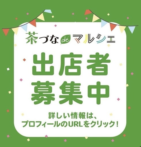 手作り雑貨・こだわり野菜農家・オーガニック食品など、 オリジナリティあふれる出店をしてくださる方、ハンドメイド作家さんはじめ一緒にイベントを育てていただける方々を 募集しております! 後期もステージ、遊びコンテンツなどなど盛りだくさんで開催いたします♪ 【募集内容】 ハンドメイト限定(雑貨、食品、アート作品、ワークショップ可) こだわりグルメを提供いただけるキッチンカー&現地調理 【名称】 「茶づなdeマルシェ」 【コンセプト】 2021年10月にオープンした、お茶と宇治のまち歴史公園「茶づな」を中心としたにぎわいを創生し 地域の新しいコミュニティの場として、さらに認知度を向上する マルシェや、グルメ、音楽や スポーツを通じて地元の活性化を図る。 また、地元宇治市内の高校生、中学生らの発表の場としても活用できる空間を創造する 【開催場所】 お茶と宇治のまち歴史公園「茶づな」エントランス広場 (URL https://uji-chazuna.kyoto/ ) 【主催】 お茶と宇治のまち歴史公園「茶づな」【企画運営】 株式会社オフィスイベントラボ 【開催日】 12月21日(日)クリスマス&ティラノラン【開催時間】 10:00~15:00 【決定通知】 出店決定及びエリア内の配置は、主催者にて決定と通知をします 【ブース分類】 マルシェエリア 30ブース 現地調理 3~5ブース キッチンカー 5台〜8台 企業PR 3ブース 【会場内設備】 テント・什器など各自持込 電力設備(有料) ※必ず テントウエイトをご用意ください。芝生の為、ペグ・杭の使用不可となっております。 【出店料】 マルシェ:3,000円(2.5m以内)4000円(3.0m以内) 現地調理:4,000円 キッチンカー:6,000円 企業PR:10,000円 ※当日徴収いたします。 【駐車場】 施設内駐車場 終日800円 または近隣コインパーキング 【搬入・搬出】 (搬入時間)開催日の 8:00頃~ (搬出時間)開催日の15:00頃~ ※来園者の残留状況により、若干の変更があります 【雨天時】 小雨決行 「雨天及び荒天は中止」となります。 前々日の15:00時点の天気予報で 「降水確率70%以上かつ、降水量3mm以上」「風速5m以上」の場合は中止といたします 雨天等、気象条件の悪い場合や諸事情により開催が難しいと判断した場合は前々日15:00頃に 茶づなホームページ、茶づなdeマルシェInstagramにて告知いたします。 雨天などが予想される場合は必ずホームページをご確認ください。 【キャンセル】 確定後のキャンセルはお控えください。また、無断キャンセルだけはないようご協力お願いいたします。 【お申込み方法】 ※募集要項をお読みいただきメールにてお申込みください。 茶づなdeマルシェInstagramの プロフィールから募集要項(PDF)ご覧頂けます。 https://www.instagram.com/chazunamarche/ または、メールで募集要項、詳細をお送りいたします! ご希望の方は↓ chazunademarche@gmail.com メールにてご連絡下さい😊 ※受信エラーなどで届かない場合、こちらからお電話いたしますので電話番号もお送りください。 【連絡先】 茶づなdeマルシェ TEL0774-57-4371