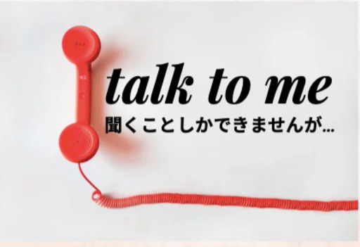 初めまして、talk to me と申します。お話聞き屋さんしてます🎵人に言えない愚痴や、どうしても誰かに話たいけど自分の周りの人には話せない!けど話たい!ことやビジネスのプレゼンテーションのテストを聞いて欲しい方、なんでも聞きます( ^∀^)ただ、聞くことしかできませんが、あなたの心が助かるのでしたら否定も肯定もしません♡しかし、お話の相談にのれませんのでただただお話を聞く専門となります。ご注意ください!最後に、下記URLがtalk to me のホームページとなっております。ご興味頂けました方は是非ご覧になって頂き、ご連絡くださいませ。🙇♀️料金例)13時ご予約(1時間のみ)¥3,000(税込) https://andtalktome.wordpress.com/home/ご相談内容#人生相談#恋愛#夫婦関係#レス#子ども#教育#育児#夫#妻#恋人#友達#女の子#男の子#ビジネス#聞いて欲しい#LGBT#異性#性について#学校#職場#家#PTA#いじめ#寂しい#怖い#悪魔#天使#勝ちたい#異世界#パワハラ#セクハラ#マタハラ#モラハラ#ハラスメント#痴漢#差別#プレゼンテーション#赤ちゃん#小学生#中学生#幼児#乳児#大学生#浪人#親#父親#母親#祖父母#叔母#叔父#独親#鬼嫁#亭主関白#育児放棄#ネグレクト#泣きそう#生きたい#ポジティブ#なりたい ・・・etc※お電話のお問い合わせではすぐに対応できない場合がございます。大変恐縮ではございますが、お急ぎの場合はH PよりLINEのお友達登録からご予約希望日程を2〜3日程度ご用意頂きご予約、ご連絡のほどよろしくお願いいたします♡