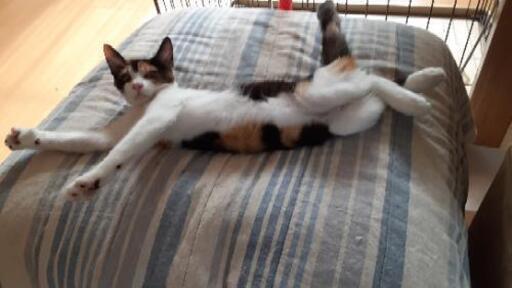 ◆募集に至ったやむをえない事情自宅裏庭に居着いた猫が子猫を5匹産みました。毎年のようにこういうことが繰り返され、保護してるうち、先住猫が6匹となり、これ以上飼えないため、里親募集します。4匹は他サイトで里親決定し、幸せになっています。どうか、そめちゃんがずっと安心して暮らせるようにお願いいたします。近隣警察署、保健所に飼い主不在確認済みです。◆性格や特徴生後5か月の女の子です。柄が特徴的。おでこにMマークあります。活発で物おじせず、人懐こいです。ワンちゃんみたいな愛嬌ある顔をしています。じゃらしが大好きで、遊ぶとすっ飛んできていつまでも遊び、疲れたらおひざの上や服の中に潜ってねんねする甘えん坊さんです。◆健康状態とてもよい。便秘も下痢もしたことありません。ドライ、ウェット共によく食べます。◆ワクチン接種、去勢手術の有無ワクチン1回目7月15日接種レボリューション便検査もしています。ワクチン2回目8月5日接種こちらで立て替え、レシート持参で精算希望します。母猫、他サイトで里親決まったほかのきょうだいともエイズ、白血病検査陰性でした。この子では検査はしていません。避妊手術はまだしていません。10月はじめに予定してます。◆その他終生大事に完全室内飼いをしてくださる方。安全で快適な環境と、適切な医療を施してくださる方。こちらが提示した譲渡契約書に署名、捺印してくださる方。近隣の方を優先させて頂きます。