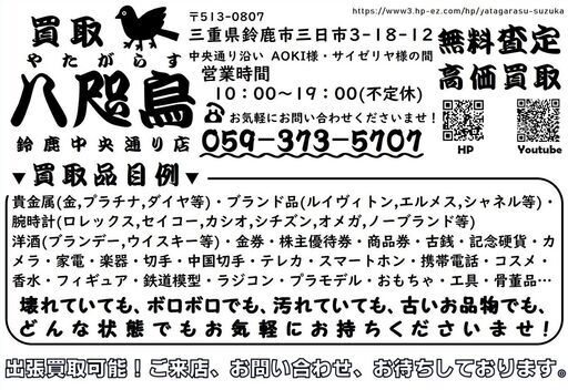 鈴鹿市の買取店、八咫烏(やたがらす)ではフィギュアの買取も強化中です。未開封のフィギュアがベストですが飾ってあったフィギュア、汚れているフィギュア等も買取しています。汚れていたり、パーツが欠けていたりすると買取価格は気持ち程度の価格になってしまいますが捨てるのは勿体無いです。上記の汚れ、破損のフィギュアは単品では値段が付けにくいですのでまとめて持ってきて戴けた方がありがたいです。気になったことがあれば気軽にお問合せ下さい。メッセージ、電話、ご来店歓迎です。スタッフ一同、お問合せをお待ちしております。〒513-0807三重県鈴鹿市三日市3-18-12買取 リサイクル 八咫烏(やたがらす)TEL:059-373-5707