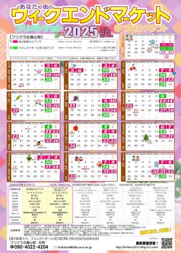 「第3回まるごとつながるフェスタ佐久平」に合わせて、「つながるフリーマーケット」を開催します。開催日:2025年9月13日(土)・14日(日) 開催時間:午前10時~午後16時出店規模:約25店【出店者募集中!】・新品中古品問わず、衣類、雑貨など・手作り作品の販売など※製作体験ワークショップは不可です。区画サイズ:幅2.5m×奥8m 車出店出店料:1,500円/1日1区画※お申込みは1区画単位です。入場無料・雨天決行・無料駐車場・飲食物、農産物、ペット類の募集はありません。・当日朝8時から搬入開始。・テント等の貸出品はありません。・1日単位で出店申込できます。※出店募集案内(申込書)の資料をご用意しています。ご希望の方は、下記アドレスにメールでご連絡ください。メールアドレス: furikura2006@yahoo.co.jp・詳細は、下記フリクラ企画ブログをご覧ください。 http://furikura2011.blog.fc2.com/フリクラ企画 林電話:080-2347-7724 又は080-8105-7300メール:furikura2006@yahoo.co.jp※本会からメールの返信が届かないことがあります。お問い合わせ後、しばらく返信がなかった場合は、お手数ですがお電話いただければと思います。