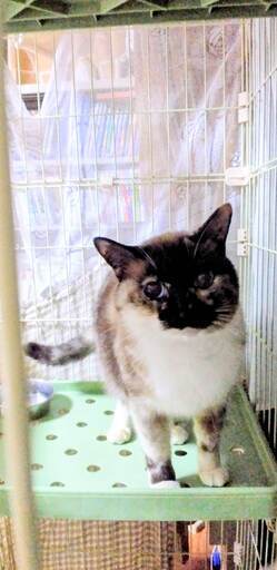 ◆性格や特徴性格はビビリちゃんです。シャム猫で瞳の色は海の色。慣れてきたら人とは鼻をチュンとしてくれたりします。ベタベタラブラブしなくてもいいんだという素晴らしい方がいればお願いします。◆健康状態良好。避妊、ワクチン済。エイズ、白血病なし。◆その他むすびちゃんといいます。4ヶ月の時にきて、里親募集をしましたが残ってしまいました。彼女のテリトリーを守るためにケージ飼いを4ヶ月続けましたが一生はかわいそうです。大人になってしまいましたが、ちょっとシャーな時もありますが、どうか家の中を好き勝手過ごせる余生を与えてくださる方、よろしくお願いします。もう我が家の選択は外に暮らした方が幸せなのかもとなってきました。