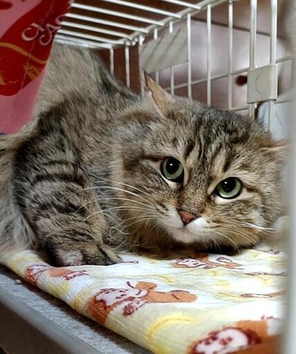 ◆性格や特徴お目目ぱっちりで美人なキジの長毛さん。ふわふわでもこもこしています。とても恐がりで、未だケージトレーニング中ですが、お世話ママには馴れてきて撫でられたりしてもビクっとはしなくなりました。ごはん時は頭を押しつけたり、喜んでケージの下に降りて来るようにもなりました。生来の恐がりなのか、何か恐い思いをしたのかはわかりませんが、心を開いてくれるまでに時間がかかります。気長にとにかく猫目線で優しくお世話していただける方が希望です。そのような子なのでそばに置いて長期トライアルもしていただけます。預かりボランティアさんも歓迎します。この場合、猫の飼育に慣れた方ならご高齢者さまでも大丈夫です。−−−−−−−−−−−−−−−−−−−−−−−−−−−−−−TNR現場にいました。避妊手術目的で仕掛けた捕獲器に入ったので、手術後保護しました。その後、一度里子に出したのですが、うっかり窓の閉め忘れがあって里親さま宅から脱走してしまいました。8週間の必死の捜索で再び保護できたのですが、ガリガリになっていたことから、脱走して知らないエリアで食べるモノを探してどうにか必死に生きてたのだとわかりました。その後、戻ってきて家猫トレーニングを続行中です。◆健康状態★元気にしています。ちょっと太り気味です。・避妊手術済み・各種駆虫済み・3種混合ワクチン接種済み・エイズ·白血病陰性(保護時の検査のみ)◆その他★里親さまのご自宅にお見合いにお伺いしています。まずは見に来ていただくこともできます。✦ご応募者さまへのお願い・一生涯手放さず家族として大事にしてあげてください・ 契約上ペット飼育可の住宅・ ご家族全員が飼育に同意していること・ 完全室内飼いと脱走防止の徹底・ 日頃の健康管理をお願いします・ 喫煙されない方、もしくは完全分煙できる方・ 動画や写真などで近況報告をお約束してくださる方・ 単身者、高齢者の場合、できるだけ近郊の方を望みます。(ルームシェアの方は不可)・単身者、高齢者の場合、ご自身にもしものことがあった時にお世話を引き継げる方がいること・ 猫がもしもの時の医療費などがきちんと負担できる方(生活保護者は不可)・ 整理整頓できる方※ 仕事を持っておりますため、お返事に時間がかかることがあります。ご了承ください。