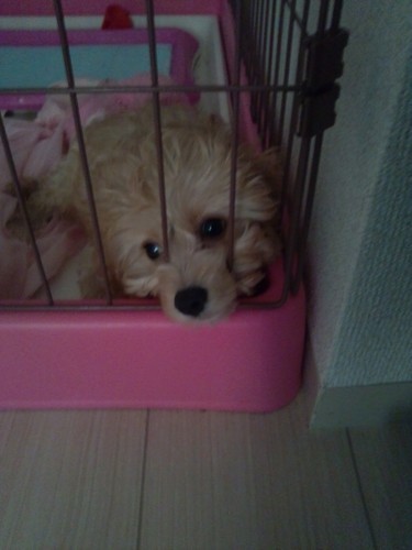 引っ越しのため里親募集します。トイプードルとキャバリアのミックス犬の3ヶ月の男の子です。ゲージも差し上げます。ワクチン2回接種済み