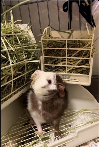 ◆性格や特徴❌テディモルモット(生後8ヶ月)臆病だけど、撫でてる間大人しいです!おやつはうさうさぴゅーれが大好きです!アビシニアンモルモット(1才4ヶ月)おやつは基本的になんでも大好きです!ケージ開けると、おやつもらえると思って一目散に近寄ってきます!!全然鳴かず、すごく静かです。ただ、うっかりチモシーをきらしてしまったりすると鳴きます。忘れなければ大丈夫です。◆健康状態2匹とも健康です。特に病気もしたことがありません。◆その他1匹からでも構いません。里親様が絞れたらすぐにお知らせしますので、気軽にお問合せください。