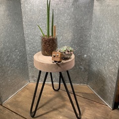 フラワースタンド3(ローズ) モルタルと鉄筋で作ったフラワースタンドです。 シンプルな素材とデザインで無機質感を出し、今人気のインダストリアルな雰囲気に仕上がっています。 ハンドメイドならではの気泡やカケをあえて残し、独特の味が楽しめるアイテムです。 リビングや玄関などのインテリアとしてだけではなく、ベランダ・バルコニーなど屋外のディスプレイ台としてもお使い頂けます。 【サイズ】 高さ 約31〜32cm 脚元幅 約25cm モルタル直径 約20cm モルタル厚み 約5cm ★画像に掲載されている植物等は付きません。 ★脚部は鉄筋を曲げ加工しツヤなしのラッカー塗装を施しています。 フローリングなどに直接置かれますと床材を傷つけてしまう恐れがございますのでお気をつけ下さい。また脚部の塗装は錆止め程度でお考え下さい。 本商品はB級品のためカケやキズ等ご了承いただける方のみご購入お願い致します