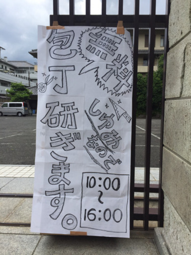 6月23日(日)無料で包丁研ぎをします。どなたでもご遠慮なくお越しください。切れない包丁が切れると、おーってなりますから、いっぺん試してみてください。物によればハサミとかでも可です。今回はキッズスペースもありますので、お子様連れでも大丈夫です。駐車場もありますので、お車で来ていただいても大丈夫です。まあ、一度お試しください。日時 6月23日 13:00〜17:00住所 天理市川原城町331当日飛び込みも受け付けますが、出る前にでもご連絡頂けると助かります。喜んで貰えれば、それでオッケーなので。(当日キャンセルはダメージが、、、)プロフィールを読んでみて下さい。