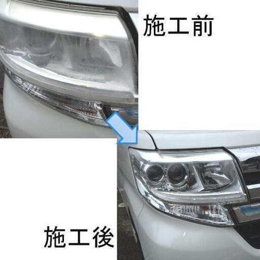 ヘッドライトが白く曇ってしまっていませんか?曇っていると見た目が悪いだけでなく、光量が不足して夜の運転が危険になる事も!?研磨〜コーディングまでします 画像は実際に施工させていただいた画像です。しっかりとマスキングで保護してから、施工させていただきます。表面の処置のため、レンズ内側のヒビ、汚れ等はキレイになりません。また、新品同様にはなりませんのでご承知ください。現在の状態によっては、キレイにならない事があります。改善されない場合、代金は不要です。また、業者ではなく個人としてやっておりますので、ご理解のうえお申し込みください。(そのぶん、料金は低めに設定しております。)商品券、各種ペイ等でも対応可能です