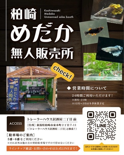 【柏崎めだか無人販売所からのお知らせ】今週末の柏崎めだか無人販売所は、まるでイベントのようにたくさんのめだか屋さんが出品してくれますよ!★大人気のセレクトミックスケースは、【めだかイットさん】と【咲めだかさん】の2店舗から登場!●さらに「ミックスメダカガチャ」も稼働中!たくさん欲しい方にはガチャがオススメですハズレなしで、最低でも100円メダカ5匹をお持ち帰りいただけます!10月18日 入荷予定(朝7時ごろ〜)7時前後* 兵庫県 【天空めだか】さん * 新潟県【咲めだか】さん8時前後* 新潟県【めだかIT】さん * 新潟県【登りめだか】さん 9時前後・滋賀県 【FUKUSUKE メダカ】さん今回は出品数多め&リーズナブルにお願いしております★