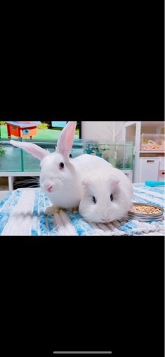 ◆性格や特徴噛んだりはしません( *ˊᵕˋ)ノ抱っこは苦手ですが触るのは平気です!部屋んぽがだいすきで、かなりの食いしん坊です☆うさぎのくせに人参🥕はあまり好きではありません笑熟れたバナナ🍌と葉物がすきです!1番はペレットフードが大好物です( *ˊᵕˋ)ノ拾われた子なので種類はおそらくアナウサギかと思われます。けっこう大きめです。目はブルーで、体は真っ白です。◆健康状態健康状態はとても良好で、避妊手術はしています。メスのうさぎの死因第1位は子宮内膜症や、子宮がんの転移などがほとんどです。避妊しているため健康に長生きしてくれると思います!◆その他拾われた子を保護し2年ほど飼育していました。2歳は推定年齢になります。私の娘の喘息がひどくなり泣く泣く里親募集をします。可愛がってきた子です🥺どうか大事にしていただける方を募集します。ケージや飼育グッズなどそのまま引渡します。よろしくお願いします🙇♀️写真に一緒に写っている白いモルモットさんもご希望であれば一緒に引き渡すことも可能です。よろしくお願いします🙇♀️