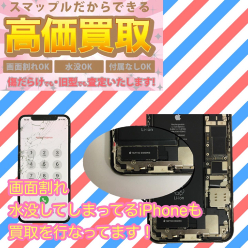 皆さんこんにちは!iPhone修理専門店のスマップル大分店です!当店では、iPhoneやiPadの買取も行なっております!当店では、画面割れや水没してしまったiPhoneなども買取しておりますのでまずはお気軽にご相談ください!修理可能機種iPhoneSE(第2世代)iPhone11/11Pro/11ProMaxiPhoneX/XR/XS/XSMaxiPhone8/8PlusiPhone7/7PlusiPhone6s/6sPlusiPhone6/6PlusiPhone5/5s/5c/SEiPad/mini/Air/Pro※修理部位により対応機種が異なります。また、一部の症状に関しては例外がございます。詳しくはお問い合わせ下さい。アイフォン/アイフォン修理/アイホン/アイホン修理/アイパッド/アイパッド修理/画面交換/液晶交換/バッテリー交換/カメラ修理/スピーカー修理/早い/安いiPhone修理スマップル大分店大分県大分市中央町2丁目1番17号ブンゴヤ本社ビル1階東097-574-8530営業時間:10:00〜20:00 http://smapple-oita.com