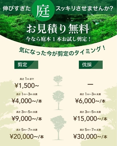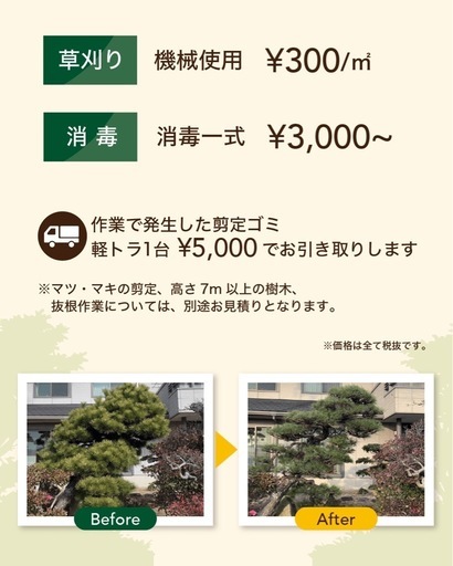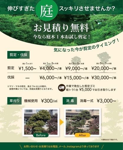 OYAMA Gardenです🌳剪定・伐採・抜根・草刈りはお任せ下さい!【対応可能作業】・庭木の剪定・伐採、抜根・草刈り、除草・空き家の庭管理・簡易舗装復旧【対応エリア】岡山・倉敷周辺【その他】・個人宅/業者様どちらも対応可・事前説明、お見積り無料✉️まずはお気軽にお問い合わせください。作業中などでお電話に出られない場合は、後ほど必ず折り返しお電話いたします!