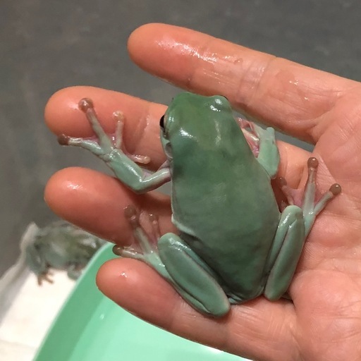 イエアメガエルCB 約5cmですが、まだまだ大きくなります。とてもかわいい、丈夫で育てやすいカエルです。雄雌まだ判別は難しいです。色も変化しますので、写真と違う色になる場合があります。1匹 4500円複数匹います。発送も可能です。発送の場合は4500円+送料です。ゆうパック80センチサイズです。気になりましたら、お気軽にお問い合わせください。