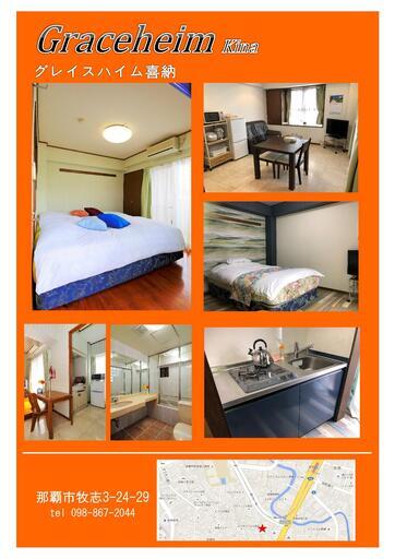 那覇市安里の不動産会社 (有)喜納住宅開発です。那覇市内にてウィークリー・マンスリーを取り扱っております。【グレイスハイム喜納】那覇市牧志にある物件です。家具・家電を揃えておりますので、かばんひとつでご宿泊いただけます。※エレベーターは付いておらず階段のみとなります。事務手数料は不要です!料金はお問い合わせください!詳しくは弊社HPへ♪→ http://www.kina.co.jp/weekly/ご自宅のリフォームや通勤・通院等のためのご滞在でご利用される方もいらっしゃいます。どうぞお気軽にお問い合わせください(*^^*)