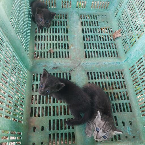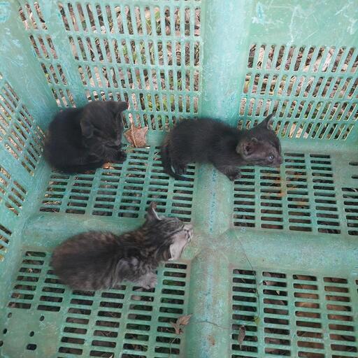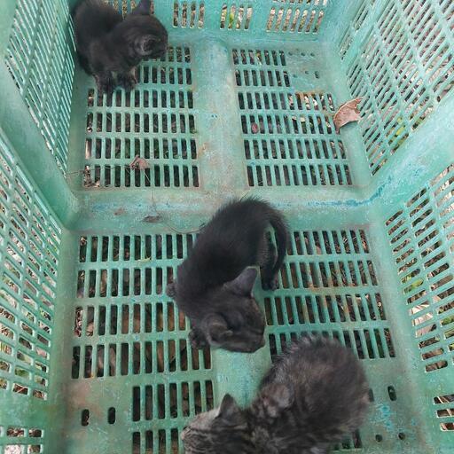 ◆性格や特徴黒二匹シマモヨウ1匹◆健康状態よく泣いてるので元気と思います◆その他会社で産まれました。もらう方いたらよろしくお願いしますカラスがうろうろしてるので心配です。うちには、犬が2匹いるので保護するのが無理です