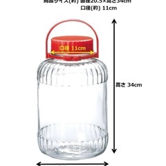ほとんど使用せずに保管しておりました。 美品かと思います。 ・中身が見えるので熟成度合も判断しやすい、ガラス製の果実酒瓶です。 ・どこか懐かしさを感じる赤いフタとレトロな曲線・・・昔ながらのデザインが魅力です。 ・分厚めのガラスでしっかりしており安定性が良いため、使い勝手がいいです。 ・ガラス製は、匂いがつきにくいので清潔です。また、取っ手付きで持ち運びや移動がしやすいです。 ・口が広いため、使用後のお手入れもラクで洗いやすいのがうれしいです。 ・また、広口の容器はおたまやレードルが入り、中身を混ぜたいときに助かります。 ・カリン酒、夏みかん酒などの果実酒や梅酒、酵素ジュース作りにもぴったりです。 ・他にも自家製の梅シロップ、梅ジュース、紫蘇ジュース、ビネガー作りなどに。 ・レモンやすだちのシロップ漬けを作って炭酸割りにして、お店のドリンクメニューにおすすめです。 ※リニューアルに伴い、パッケージ・内容等予告なく変更する場合がございます。予めご了承ください。 食洗機対応:不可 / 電子レンジ対応:不可 / 容量:8000ml ※耐熱ガラスではありません。熱湯消毒・煮沸消毒はしないでください。 ※急激な温度変化(急冷・急熱)により割れる恐れがあります。 ※ガラスが熱いうちに冷たいものを入れたり、ぬれた場所に置かないでください。 ※びんはやわらかいスポンジを使い、ぬるま湯で必ず洗い、清潔な乾いた布巾などでの上に伏せて、水気を切り乾燥させてからお使いください。 ※熱湯消毒・煮沸消毒はせず、ホワイトリカー、もしくは食品用アルコール(エチルアルコール)で内側を拭いてご使用ください。 ※研磨材入りのスポンジ・スポンジたわしのハード面・ナイロンたわし・金属たわし・クレンザーなどを使用しないでください。ガラスを傷付け、思わぬ破損の原因となります。 ※樹脂部分(外ブタ・内ブタ・吊手)は熱湯消毒・煮沸消毒はしないでください。変形の恐れがあります。 本体サイズ:φ11×34cm、最大径約20.5cm 本体重量(g):約2520g 素材・材質:(本体)ソーダライムガラス、(外ブタ)ポリプロピレン樹脂[耐熱温度:100度]、(内ブタ)ポリエチレン樹脂(抗菌剤入)[耐熱温度:70度]、(吊手/ハンドル・止め具)ポリプロピレン樹脂[耐熱温度:90度]、(吊手/リング)ポリエチレン樹脂[耐熱温度:40度] ※耐熱温度は部品ごとの目安を表示しています。 原産国:日本
