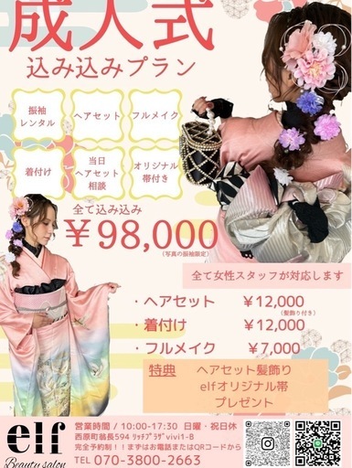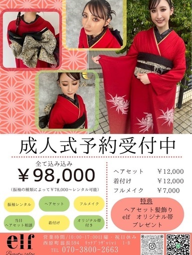 2026年度🌼成人式当日お支度ご予約受付中❣️専門を極めたスタッフ達が一生に一度の晴れ舞台をお手伝いいたします!!個性的なヘアセットやメイクに加えオリジナルの着付けで誰よりも華やかに仕上がる事間違いないです!振り袖レンタル新作も入荷してますので試着のご予約などもお待ちしております👘予約特典として、オリジナル帯や髪飾りプレゼント中です!また、早割り特典通常金額ヘアセット¥12000⇨¥10000着付け¥12000⇨¥10000メイク¥7000⇨¥6000⇧上記に加え2つ以上のメニュー予約でお友達ご紹介(本人&お友達がご予約確定)合計金額からさらに➖¥500引きになります!!かなり予約が埋まりやすいため早めのご予約お待ちしてます♪♪西原町翁長594番地リッチプラザvivi 1-Belf beauty salon内