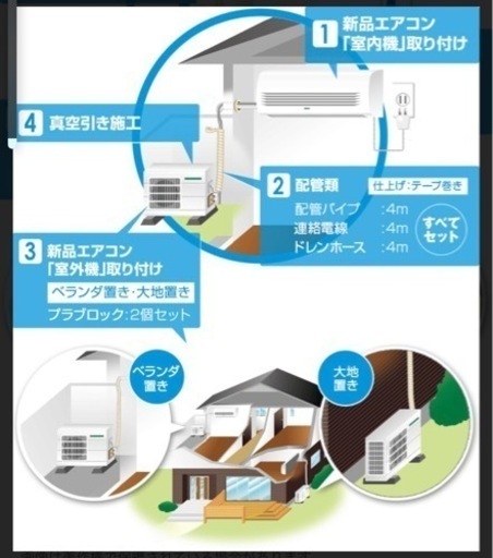 Panasonicルームエアコン(標準工事込み価格)税込2.2kw6畳用 76000円 在庫2台限定別メーカー、他サイズもお安く取り付けいたします。既存のエアコン取り外し、処分がある場合プラス4000円になります。標準工事の参考写真2枚目に載せてます。販売のみでも可能です。