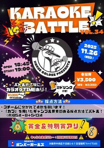 【あと2名‼️11/26(水)夜🌛】カラオケバーでカラオケバトル🎤🔥 (投稿ID : 1l1wqw)