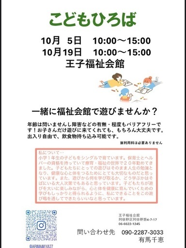 日曜日いつも子どもの遊ばせるところに悩んでいました。友だちがいない分、華やかな遊具があって思い切り体を動かせるプレイパークに連れて行って、エネルギーを発散させていましたが、こんな悩みもってるの自分だけじゃないよな?って公民館を借りて解放することにしました。他の子どもがいる場所が好きなお子さんは沢山いるだろうし、娘も誰でもいいから子ども同士で遊びたい!ってエネルギーがむちゃくちゃ強いので、たくさん来てくれたら嬉しいです🥹9/28は10:00〜12:0010/5と10/19は、10:00〜15:00で解放してます!11月以降も開けられるときは開けますので、是非来てください!あまりおもちゃはないかもしれないけど、子どもと大人といろんな遊びを作りながら自由に楽しみたいです。