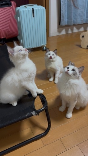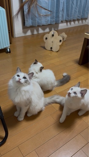 ◆性格や特徴母猫は落ち着いていて、おとなしいです2匹の子猫は一緒に遊ぶのが好きです◆健康状態なし◆その他3匹の親子ラグドールを最後まで大切に育ててくださり、離さず一緒に可愛がってくださる里親さんを募集しています。母猫はワクチン接種済みですが、今年は追加接種と避妊手術が必要です。2匹の子猫(5か月齢)は、まだワクチンを受けていません。毎日ゆでた鶏むね肉や缶詰などのウェットフードを与えられる里親さんを希望します。ドライフードの給餌はできるだけ控えていただきたいです。