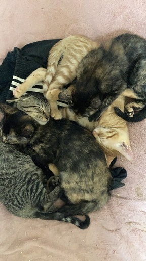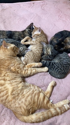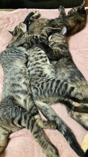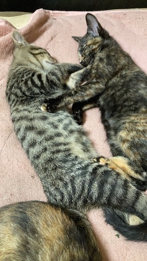 ◆性格や特徴性格はおとなしいです。トイレも出来ます。さび猫は女の子2匹 キジトラ男の子2匹です。宜しくお願いします。◆健康状態けんこうは良好です。◆その他全員ベッドに上がって来てゴロゴロ言ってきます。人懐こい猫ちゃんです