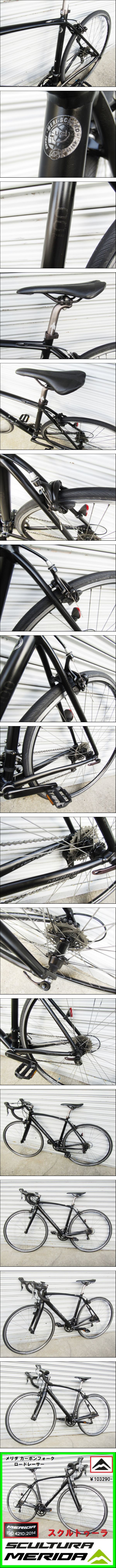 信頼と実績 MERIDA メリダ MERIDA SCULTURA 100 メリダ スクルトゥーラ カーボンフォーク オールラウンダー ロードバイク ロードレーサー(定価¥103290-) サイクルコンピュータ付 ワールドカップを戦うレーシングバイクを手掛けるMERIDA カーボンフォークにShimano製ドライブトレイン MERIDAオリジナルパーツアッセンブル 優れた信頼性と走りを両立した Scultura スクルトゥーラ インターナルケーブルデザイン 上位機種トリプルバテッドフレーム採用モデル ロゴペイント等薄れておりますが 使用走行に影響なく軽快高速走行♪ 多少よごれなどは見られますが状態良く綺麗です♪ 新品ご購入はもったいないとお考えの方にお奨め! 通勤・通学・週末ライド・クリテリウム コレクションにどうぞよろしくお願い致します 現品限りで 高価で超希少なモノかと存じますが 売り切りますのでどうぞよろしくお願い致します ●素材:アルミフレーム・カーボンフォーク ●変速機:(2×8)16段シフト ●タイヤサイズ:700c (700×23c) ●フレームサイズ:50cmC-T ●全長:167cm ●ホイルベース:99cm ●トップチューブ:52cm ●シート高さ:(地面から)88~105cm (地面から88㎝→170㎝の方で両足カカトが浮く感じです) ●短いシートポスト装着で地面から 83cm~可能です ●カラー:ブラック系 ●防犯登録用 販売証明書付帯しております 早い者勝ち 手渡し商品なので こころ苦しかったですが 昨日も5分差 sold out になっていました お見逃しなく♪ 大阪市内 中央大通り 東向き 深江橋手前 神路大橋 阪神高速 東大阪線 高架下横 追加画像↓ https://template.afimg.jp/upfiles/683962/merged2_69e3411192849.jpg https://template.afimg.jp/upfiles/683962/merged2_69e3413466eed.jpg https://template.afimg.jp/upfiles/683962/merged2_69e34148eaf6c.jpg