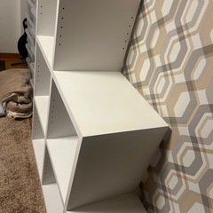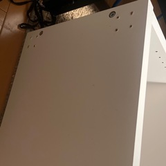 IKEAの棚です。 側面の1つの面にDIY跡の穴と破れあり。 わが家は、床側の設置面にして今は使用していました。 画像4枚目5枚目でご確認下さい。 また、ところどころとれない汚れが軽度あります。 以上ご理解のうえ、自宅までとりにきてくださるかた よろしくお願いします。 車前までは、運ぶお手伝いはしますが、トラブル防止のため 車に乗せるお手伝いは出来ませんのでよろしくお願いします。