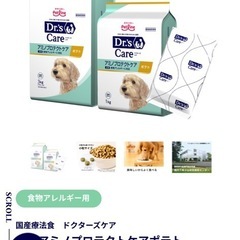 食物アレルギー用のドッグフードです。 5月に購入しましたが食べないので新品未開封2キロ余ってます。 ネットのサイトから3キロ8000円で購入しました。 近くまで取りに来てください。
