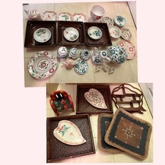 あみの四角い入れ物と小さい方の入れ物3つはお皿をボンドで以前はって飾っていました そのボンドの後が5つともあります 他は綺麗に飾っていただけなので、ほぼ新品に近いです 神経質な方はご遠慮下さい