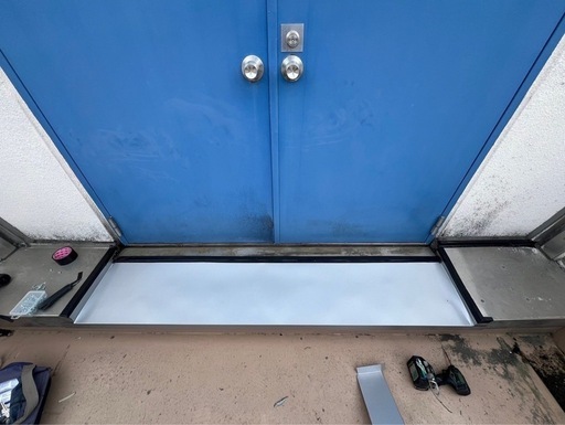 大阪府枚方市にて、中学校の渡り廊下エキスパンションジョイントステップから雨漏りがするので、ガルバリウム鋼板で加工し、カバー工法で施工しました。#雨漏り#中学校#渡り廊下#エキスパンションジョイント#ステップ#ガルバリウム鋼板#エキスパンション#板金屋#板金加工#カバー工法#枚方市#求人募集#建築板金