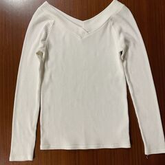 目立った汚れ等はありませんが、よく見ると生地が少し毛羽立ったかんじです。ただ、写真のとおり、遠目にはさほど気にならないと思います。 首元はわりと大きめに開いています。