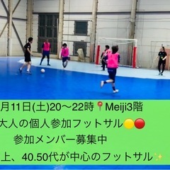 11/1(土)20時🔴🟡40.50代が中心の大人の個人参加フットサル🟡🔴男女経験問わず募集🔥