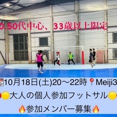 10/18(土)20時🔥40.50代が中心、大人の個人参加フットサル🔥男女経験問わず参加メンバー募集