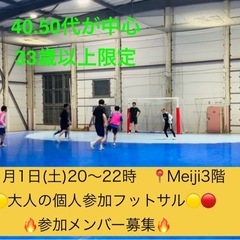 11/1(土)20時🔥【40.50代が中心の大人の個人参加フットサル】🔥男女経験問わず募集、平均年齢45歳☆彡