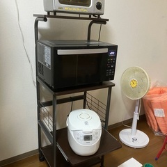炊飯器、電子レンジ、トースター、収納ラック4点セット