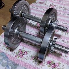 1つ7.4kg(2.5kg×2個とシャフト+ネジ2.4kg)