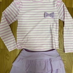 長袖のラッシュガードとパンツ付きスカートのセットになります。