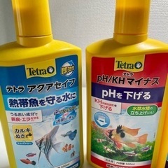 テトラアクアセイフは1cm位使用、pH/KHマイナスも1cm位使用、テトラパーフェクトウォーターはほぼ未使用に近い、