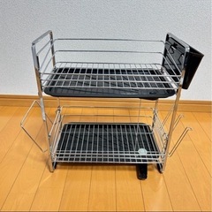【新品未使用】水切りラック シンク上 2段 炭素鋼製 グレー 大容量