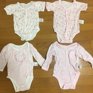 半袖花柄の前開き薄手の股を留めるタイプの肌着2枚と、長袖かぶって着る股を留めるタイプの花柄とボーダーの肌着の合計4枚セットです。いずれもH&Mの物です。